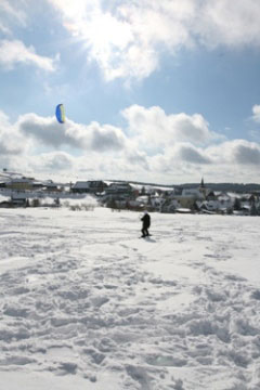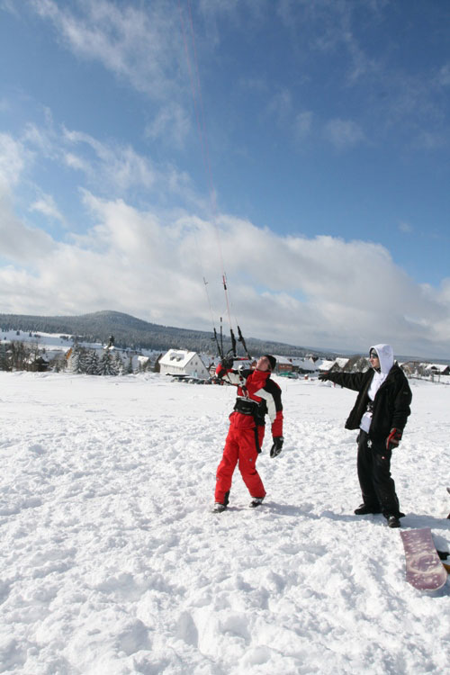 Boží Dar je jednou z mála lokalit, kde se dá snowkiting provozovat i když jinde není sníh. Díky své nadmořské výšce a podnebí se zde vždy nějaký ten sníh najde a tak je Boží Dar skvělou lokalitou pro pořádání našich zimních snowkiting kurzů.