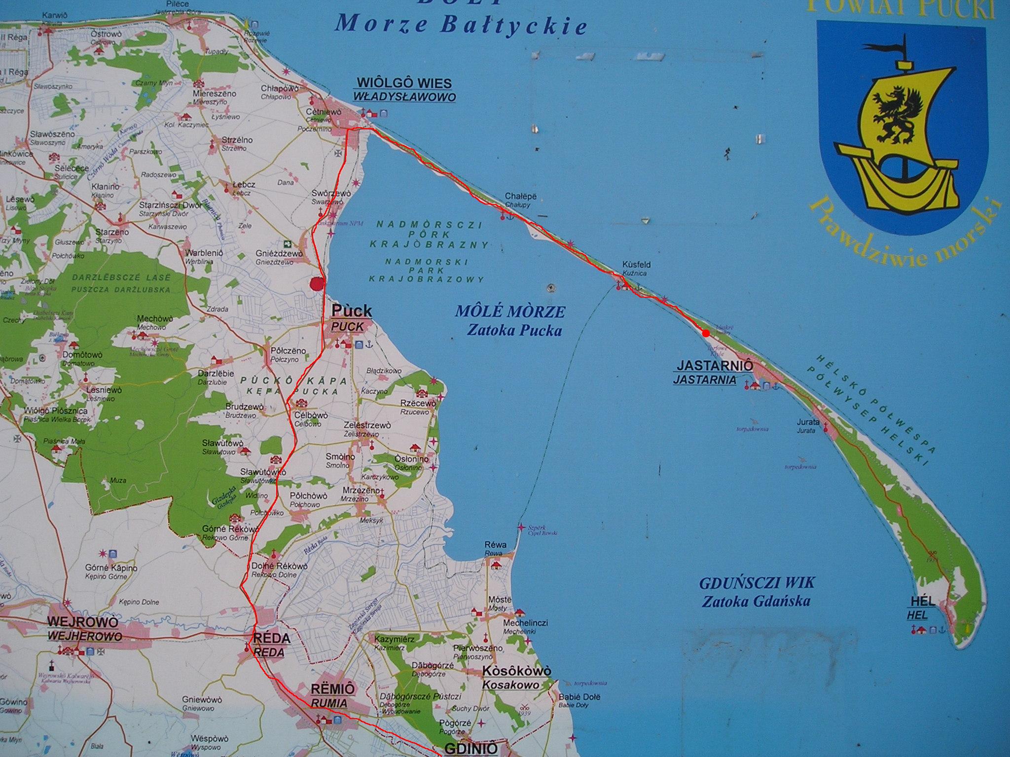 Asi jedny z nejznámějších kite spotů se nachází na poloostrově Hel. Necelých 40 km dlouhý poloostrov v nejsevernější části polska u zátoky Puck, který je ve své nejširší části široký asi 1,5 km. Z jedné jeho strany jej obklopuje moře a z druhé klidná Pucká zátoka. Toto místo je ideální nejen pro kitery začátečníky, ale i pro zdatnější jezdce. Hlavním důvodem je mělkost vody v zátoce, která velice daleko od břehu sahá po pás a skvěle se zde startuje z písčitých pláží.