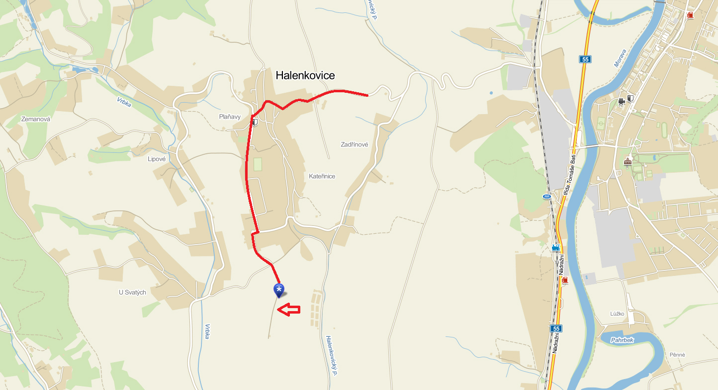 Příjezd na plochu autem až přímo ke spotu - když se dostanete do obce Halenkovice, přijedete z její horní strany. Pojedete stále po hlavní kolem obecního úřadu až dolů, kde se dostanete na T. Zde odbočíte doprava a pak hned doleva (esíčkem). Další křižovatku projedete rovně a jste přímo na spotu. Pokud pojedete autobusem, jeďte do obce Halenkovice a odtud 1,6 km pěšky.